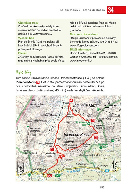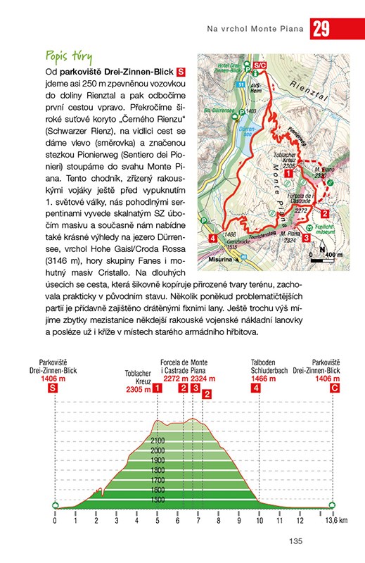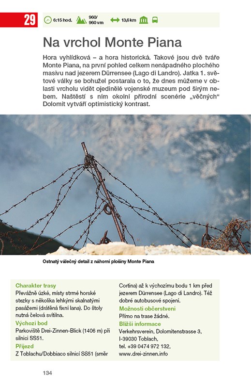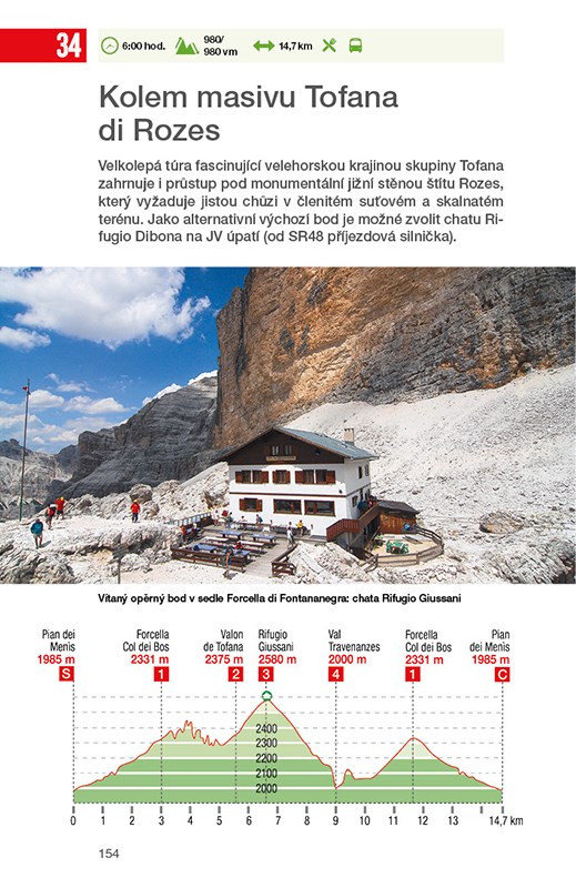 40 pěších výletů a horských túr k salaším, chatám a na vrcholy; GPS tracky ke stažení; Se skládací mapou. Průvodce nabízí 40 opravdu výjimečně krásných túr, které vás zavedou na skalnaté vrcholy a k vysokohorským jezerům, k horským chatám a salaším a na další zajímavá místa v Dolomitech. Túry jsou rozděleny do tří odstupňovaných kategorií. Podle vlastní fyzické zdatnosti si můžete zvolit trasu vysoké obtížnosti, nebo naopak trasu zcela nenáročnou, vhodnou i pro rodiny s dětmi. Ke každé z nich jsou připojeny mapka, podrobný popis, důležité informace i upozornění na zajímavosti, vyhlídky, možnosti ubytování a občerstvení. V průvodci na vás čekají také moc hezké fotografie a skládací mapa pro snazší orientaci v měřítku 1:100 000.