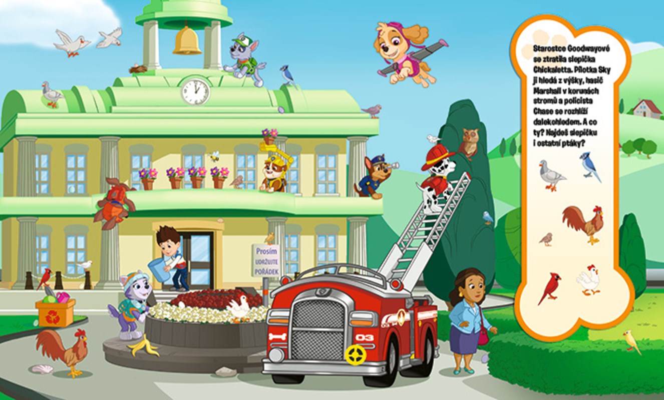 Tlapková patrola znovu zasahuje! Přidej se ke svým kamarádům a pátrej s nimi po věcech schovaných v městečku a jeho okolí. Pak tě čekají další úkoly, při nichž si procvičíš počítání, rýmy i určování tvarů a barev. V edici Hledej s Tlapkovou patrolou vychází také: Tlapky na stopě, Pátrej se Skye!