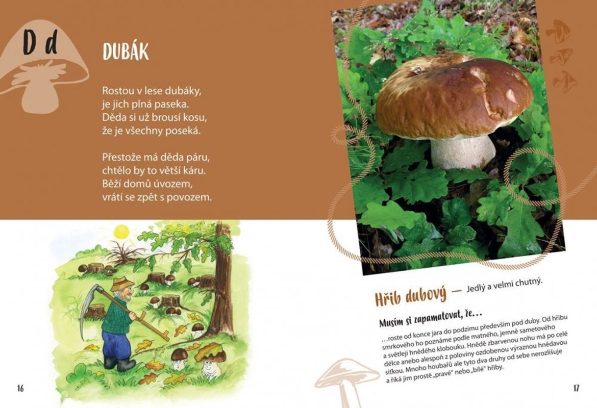 Kdo z nás by rád nesbíral houby? Asi každý. Jakmile začnou růst, popadnou houbaři košíky a hurá na ně! Nejenom dospělí, ale i jejich malé děti je rády sbírají. Houby je ale třeba dobře znát. Jsou mezi nimi nejenom jedlé, ale i prudce jedovaté, po kterých bychom se mohli otrávit. Kdo ale houby zná, ten se bát nemusí. A může je sbírat po celý rok - od jara až do zimy. Tato knížka je určena nejmenším houbařům. Bude to jejich houbová abeceda. U každého písmena abecedy naleznou říkadlo o jednom z druhů hub, k tomu krásně ilustrovaný obrázek a navíc i skutečnou fotografii příslušné houby, aby ji v přírodě snadno poznali. A tak už na nic nečekejme a vydejme se společně poznávat naše houby s říkadly podle abecedy.