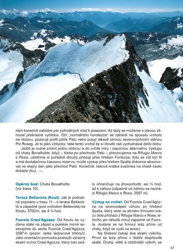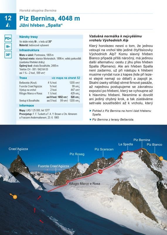 Aktuální průvodce velkými vrcholy Východních Alp je knihou nejen na čtení, ale i na snění. Jeho stránky vypovídají o aktuální podobě neustále se měnícího horského světa a současně napovídají, že tento svět slibuje mnoho velkolepých příležitostí i do budoucna. U každé túry fotografie nástupu s grafickým vyznačením cesty; Mapy v měřítku 1:50 000 u všech tras; Klasifikace obtížnosti podle pravidel UIAA; Podrobné, vysoce aktuální a ověřené popisy tras; Nepostradatelná publikace jak pro ambiciózní začátečníky, tak pro vášnivé vysokohorské alpinisty se zkušenostmi z ledového i skalního lezení.