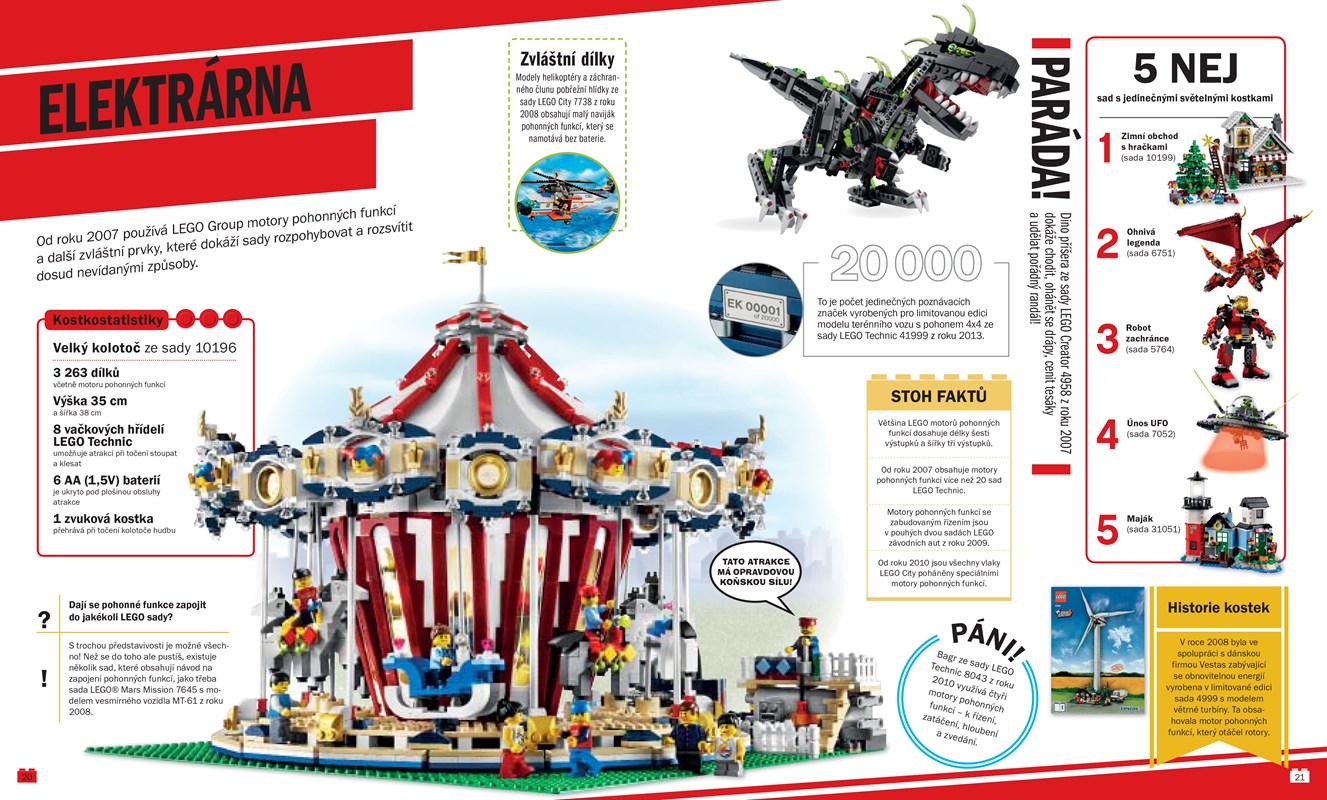 Věřili byste, že jednou z prvních hraček, které společnost LEGO Group vyrobila, byla dřevěná kachna? Nebo že každou minutu se na světě vyrobí 68 000 LEGO kostiček? A věděli jste, že dílek ve tvaru croissantu najdete hned ve 44 LEGO sadách? Tato kniha vám odhalí velkou nálož zábavných, fascinujících a podivuhodných faktů pro fanoušky LEGA každého věku. Od drobounkého nádobí pro minifigurky po ty největší modely z LEGOLANDU®: prozkoumáte všechny postavy, místa, součástky a řady sestavené z ikonických kostiček. Vstupte do světa LEGO a staňte se odborníkem na světový fenomén, který baví děti i dospělé už několik desítek let.