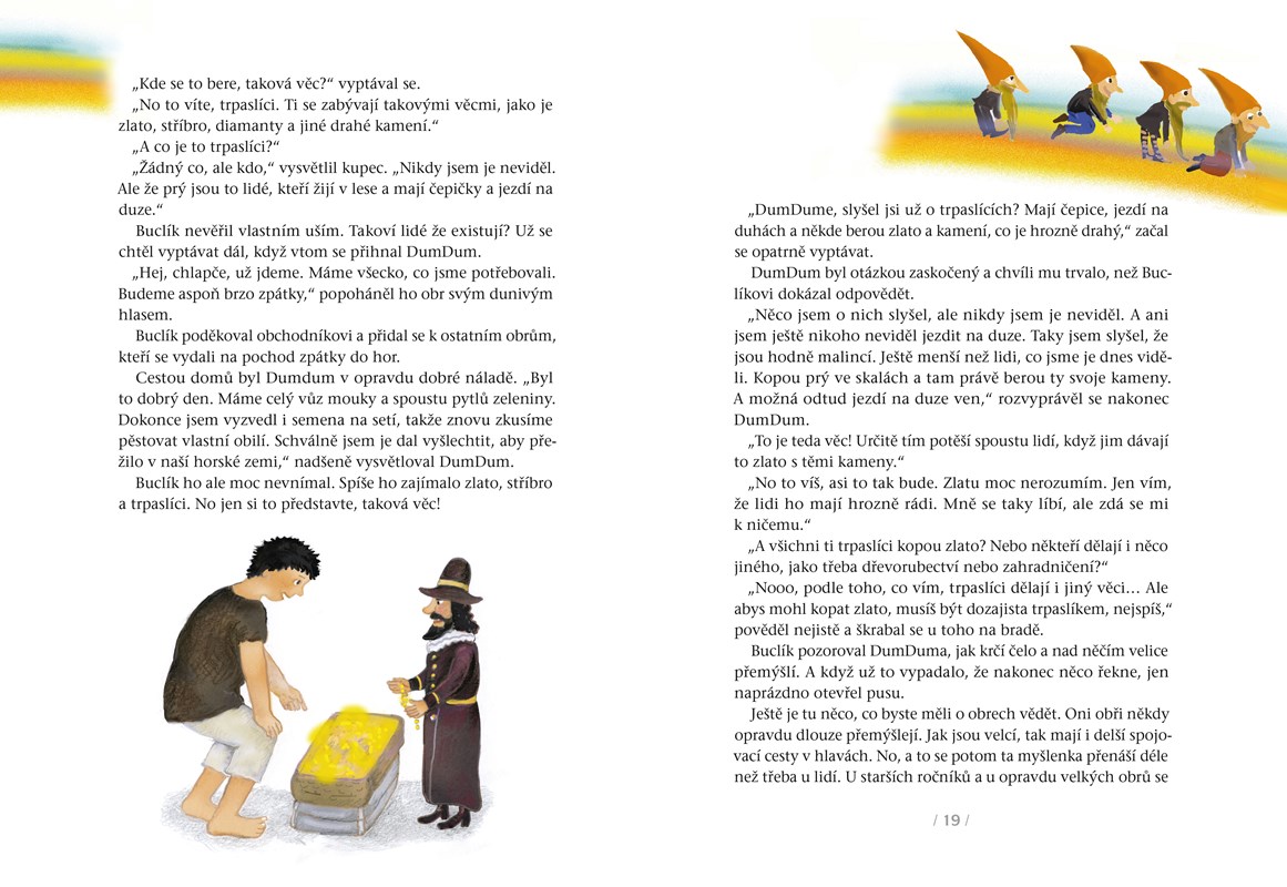 Obr Buclík není jen tak obyčejný obr. Příliš nevyrostl, a možná i proto se rozhodl opustit ostatní obry a vydat se za dobrodružstvím. Uchvátily ho totiž legendy o trpaslících, které zaslechl od lidí. A aniž by věděl, co nebo kdo je to trpaslík, vše kolem nich mu přijde neuvěřitelné a lákavé.