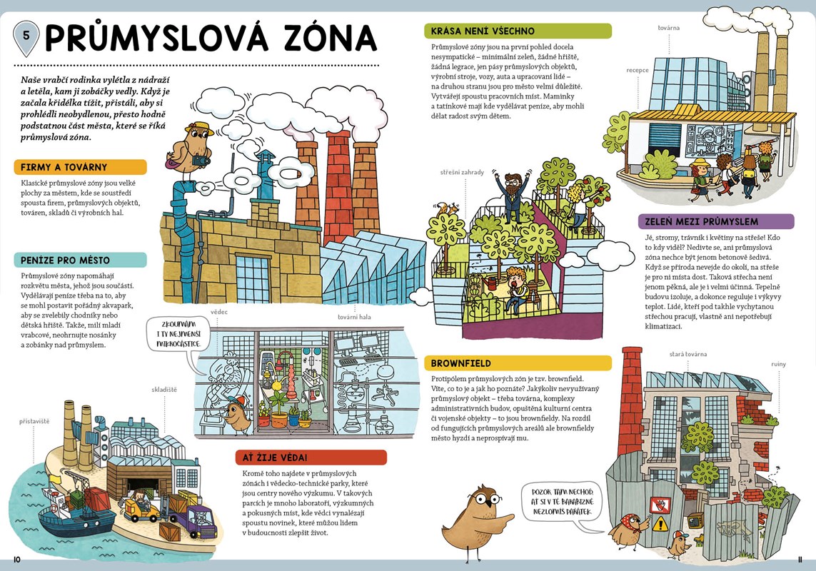 Rodinka pěti vrabců přiletí jednoho dne do města. Zatímco maminku Vrabcovou přitahují bulváry plné módních butiků, táta Vrabec se synkem propadnou tajům městského podzemí. Babička Vrabcová by nejraději odpočívala na lavičce v parku nebo v kavárně na náměstí, její vnučka by pro změnu s chutí skočila do bazénu. Kniha se třemi mapami a spoustou informací o tom, z čeho se vlastně skládá město, zaujme jistě všechny malé čtenáře i jejich rodiče. Chcete projít město křížem krážem? Přidejte se k vrabčí rodince a dejte si pozor, ať nezabloudíte!
