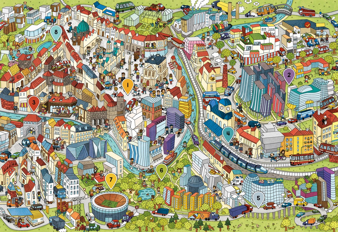 Proleť s vrabci všemi částmi města a nevynechej ani kousek.