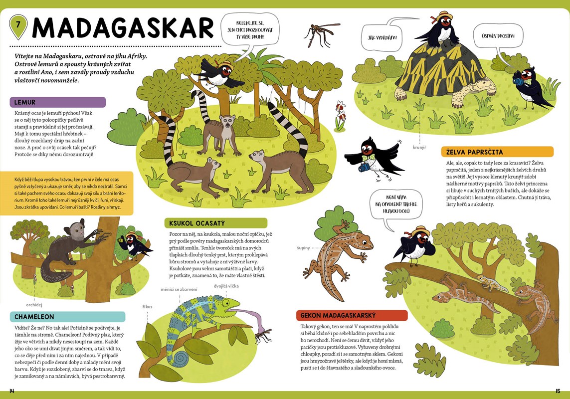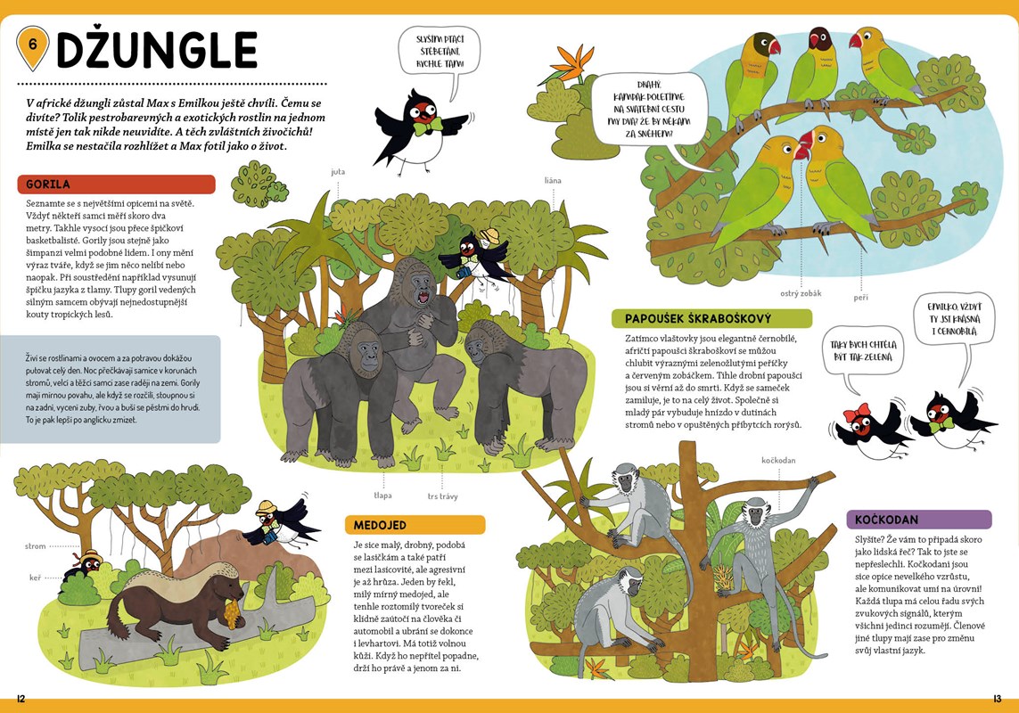 Emilka je mladá vlaštovčí dáma a Maxmilián její vyvolený. Nedávno se vzali a teď letí na svatební cestu. Kam? Jasně že do Afriky! Malinko se ohřát a hlavně poznat své zvířecí kolegy. Chcete se k zamilovanému párečku přidat? Nic vám v tom nebrání. Díky třem rozkládacím mapám uvnitř knihy se v Africe dokonale zorientujete, a pak už jenom můžete číst, poznávat život divokých zvířat a těšit se ze spousty barevných obrázků.