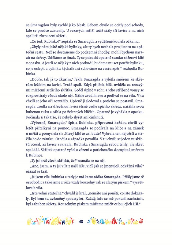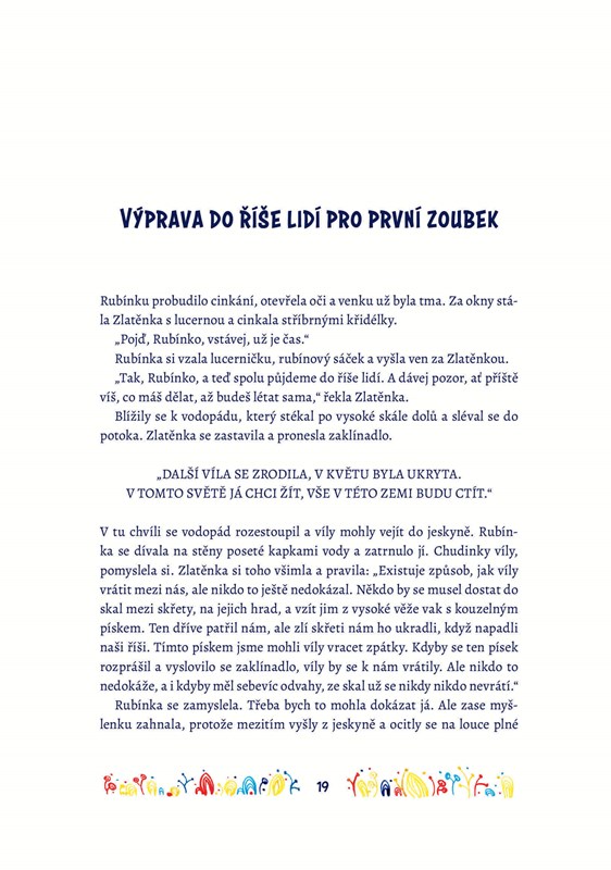 Víla Rubínka přišla na svět z rubínové květiny. Patří mezi zoubkové víly, které do země lidí létají pro dětské zuby. Ale Rubínka má ještě jeden úkol. Kouzelnou zemi totiž napadli zlí skřeti, kteří zakleli její kamarádku Zlatěnku a navíc už roky drží ve vězení krále skřítků. Dokáže je statečná víla porazit a zachránit své přátele? Pohádkový výlet do fantastické říše, který bude bavit děti i rodiče.