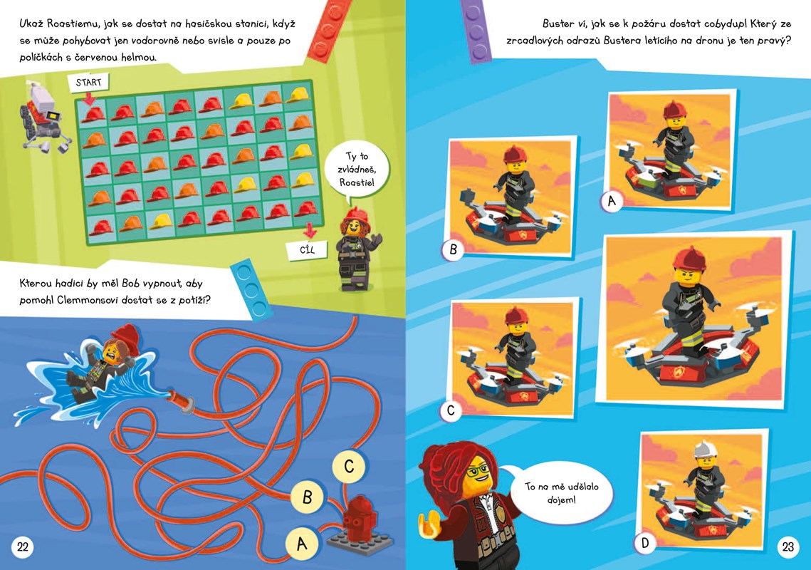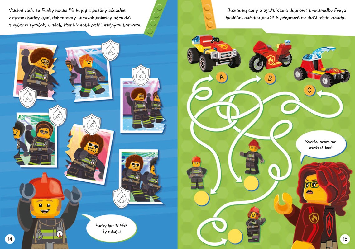 V LEGO® City vypukl požár! Hasičský sbor je však naštěstí vždy připraven i na neočekávané události. Přečti si o této neohrožené partě v komiksu a v rozhovoru s velitelkou hasičské čety. Také budeš hledat rozdíly, řešit rébusy a procházet bludišti v LEGO City. Sestav si minifi gurku velitelky hasičů a jejího nového hasičského robota a pak k nejbližšímu nouzovému východu, než Freya stihne dopít své horké kakao!