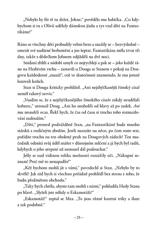 Hedy a Spencer jsou opět v domě na Hrabivém vrchu, který patří jejich dědečkovi, bývalému kouzelníkovi. Náhodou se dozvědí o Fantastikáně, turnaji v magii, který se odehrává v tajemném podzemí, kde vládne spolek kouzelníků Eskamotáž. Když se tam vydají, objeví podivnou živou mapu, která se vytetuje Hedy na kůži a zdá se, že ji táhne dál do podzemí.