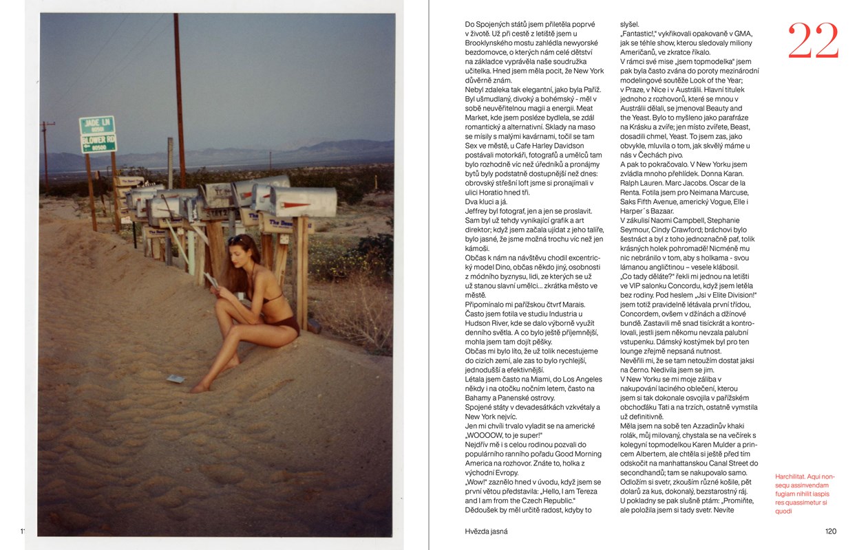 Díky tomu se dokázala zpátky vžít do té mladé, částečně naivní holky, která do všeho šla bezhlavě a uměla si užít na plno všechny své vzestupy a pády. „O fotografie jsem neměla nouzi. Mamka měla obrovskou zásobu časopisů a já mnoho fotek z cest z foťáků na jedno použití. Byl to takový osobní dárek sama sobě ke svým narozeninám.“