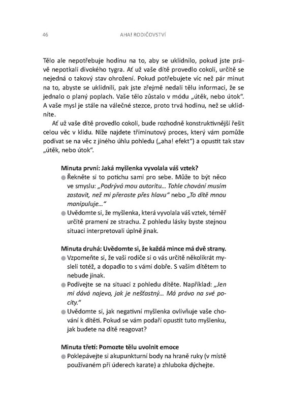 Většina knih na téma rodičovství se zaměřuje na změnu chování u dětí. Kniha, kterou držíte v rukou, začíná u nás – tedy u rodičů. Pomůže nám lépe porozumět vlastním emocím. Poskytuje jednoduché a praktické návody, jak zpracovat naše reakce, abychom byli schopni děti vést s empatií, pomocí stanovení zdravých hranic a jasné komunikace.
