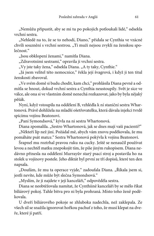 1944: Beth, která přijíždí do Higbury vypomáhat na farmě, touží najít domov. Kuchařka Stella naopak zoufale chce z Highbury pryč, aby si splnila své vlastní sny. Ovdovělá Diana, paní velkolepého domu provizorně přeměněného na ozdravovnu pro vojáky, úzkostlivě lpí na svém předválečném životě. Ale když válka ohrozí vzácné zahrady, tyto tři naprosto odlišné ženy spojí tajemství, které zůstane nadlouho skryto.