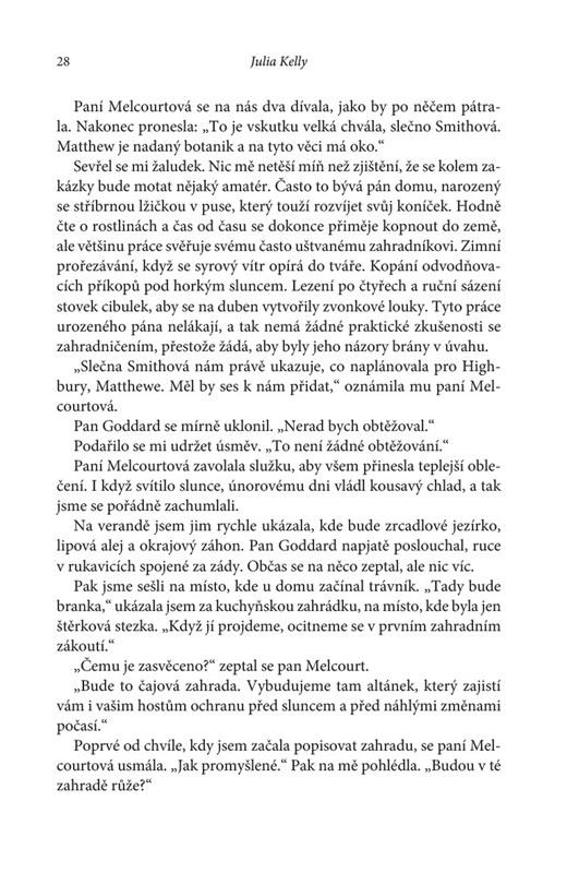 Současnost: Emma zasvětila svou kariéru renovaci zahrad a právě dostala životní příležitost – obnovit zahrady velkolepého sídla Highbury House, které v roce 1907 navrhla proslulá Venetia Smithová. Jak se Emma ponořuje hlouběji do minulosti zahrad, odhaluje tajemství, která byla dlouho zarostlá plevelem.