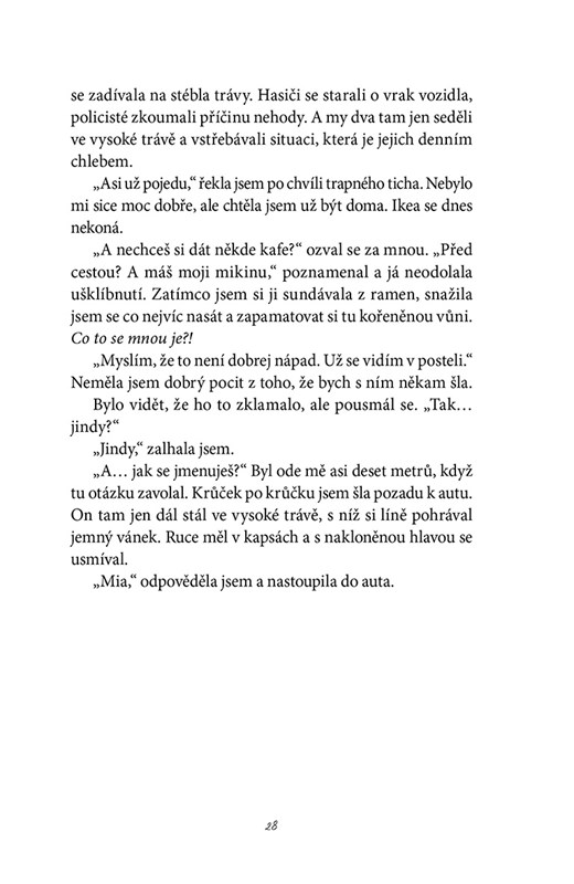 Pak se ale objeví Sebastian. Neomalený, povrchní, sprostý… s těma nejkrásnějšíma očima, jaké kdy viděla! K tomu, že je tak uzavřená, má své důvody. Osud ji totiž postavil před těžkou zkoušku, v níž nemůže vyhrát. Kvůli Sebastianovi se ale Mia začne zamotávat do svých pravidel i citů. Poslechne srdce, nebo dá na rozum? Pomůže jí Sebastian zbořit těžce vystavěné hradby a naučí ji znovu žít a milovat?