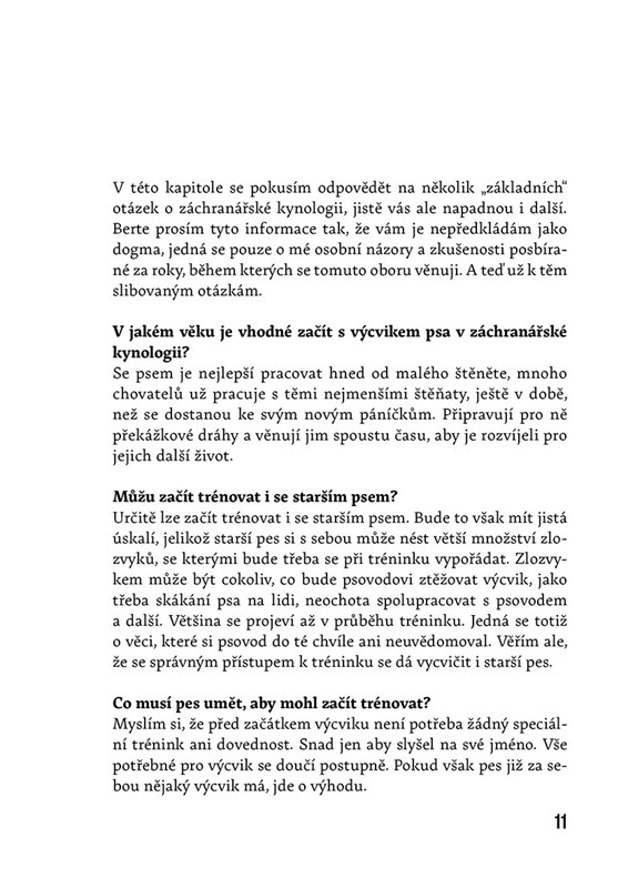 Kniha Psí záchranář začíná vyprávěním o snu malého kluka, který moc chtěl pejska. Seznámíte se s jeho cestou k záchranářské kynologii, s výcvikem, který musel absolvovat, i s náležitostmi, které tato práce obnáší. Tato kniha mapuje období skoro dvaceti let. Vzestupy i pády. Je to kniha o původně naivním dětském snu, jehož naplnění předčilo i ta největší očekávání. Autor osvětlí čtenářům některé pojmy, se kterými se můžete v záchranářské kynologii setkat, a odpoví na nejčastější otázky spojené s touto profesí. Po přečtení první časti se dostanete k příběhům, které Petr Svoboda se svými psy skutečně prožil. Příběhy obsahují vzpomínky z výcviků, soustředění a zásahů.