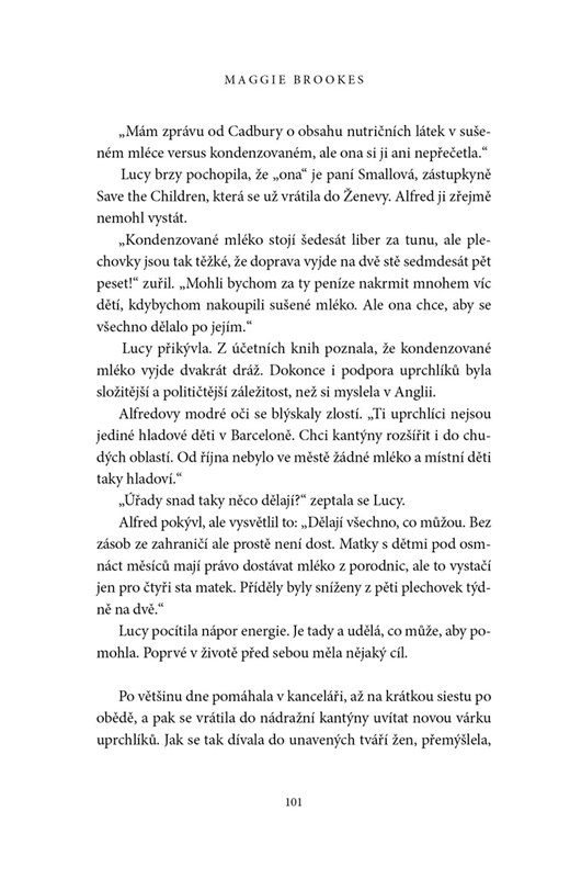 Lucy pomáhá hlavně hladovým matkám a dětem, bojuje se zmatkem, byrokracií i válečnou bezohledností. Přitom se snaží najít oba bratry a zároveň si v sobě ujasnit, co ke kterému z nich cítí. Osud nakonec velmi dramaticky zamíchá jejich životy a láska se stane jen jedním z pěšců na šachovnici války. Přesto by se bez ní nedalo přežít.