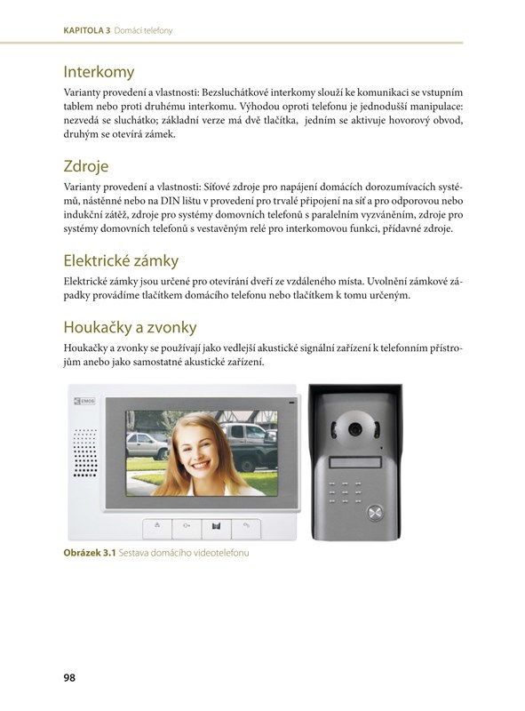 Kniha je rozdělena do šesti kapitol, v nichž najdete informace o výrobě a přenosu elektrické energie, dále schémata pro základní zapojení zásuvkových a světelných obvodů, zapojení domácích videotelefonů a zvonků, rozváděčů pro daný druh elektrické sítě, a stykačových kombinací používán k ovládání elektromotorů. Poslední kapitola pak obsahuje přehledný seznam nejpoužívanějších schematických elektrotechnických značek a barevného značení vodičů a jističů.