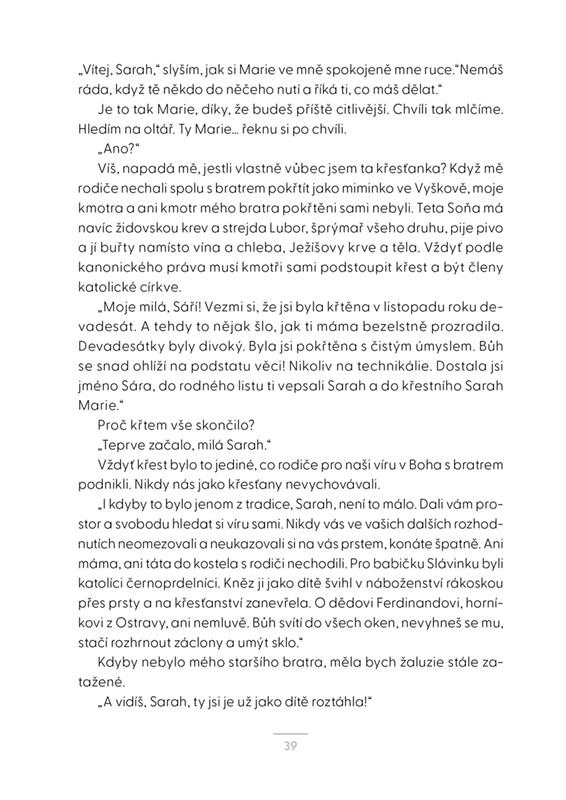 Jak se vypořádat s pochybnostmi o sobě samé, s láskou, vztahy, s přítomností? Pro odpovědi na své životní otázky se vydala Sarah Haváčová, původně jako nezávazná cestovatelka, do portugalské Fatimy. Aby si srovnala myšlenky, aby zažila dobrodružství, spala pod hvězdami, byla sama se sebou.