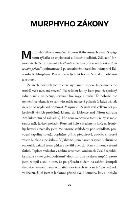 Často jsou spíše slyšet nežli vidět. Přestože symfonie jejich sirén přináší leckomu nemilé vzpomínky ze života, málokdo se za ujíždějícími vozy Integrovaného záchranného systému neotočí. Sanitky. Požární tým. Vozy policie. A jejich řidiči. Tato práce je filozofií, darem, zodpovědností, dřinou, ale hlavně poselstvím. Mnohdy za záchranu života nebo majetku neuslyší ani jediné poděkování, přesto vyrážejí dnem i nocí za dalšími povinnostmi a mnohdy i dobrodružstvím. Díky této knize nahlédnete do zákulisí práce řidiče sanitního vozu a dozvíte se spoustu zajímavých informací, to vše doprovázené mnoha autentickými zážitky. Připoutejte se, prosím, poznávací jízda doprovázená humorem i nadsázkou právě začíná.
