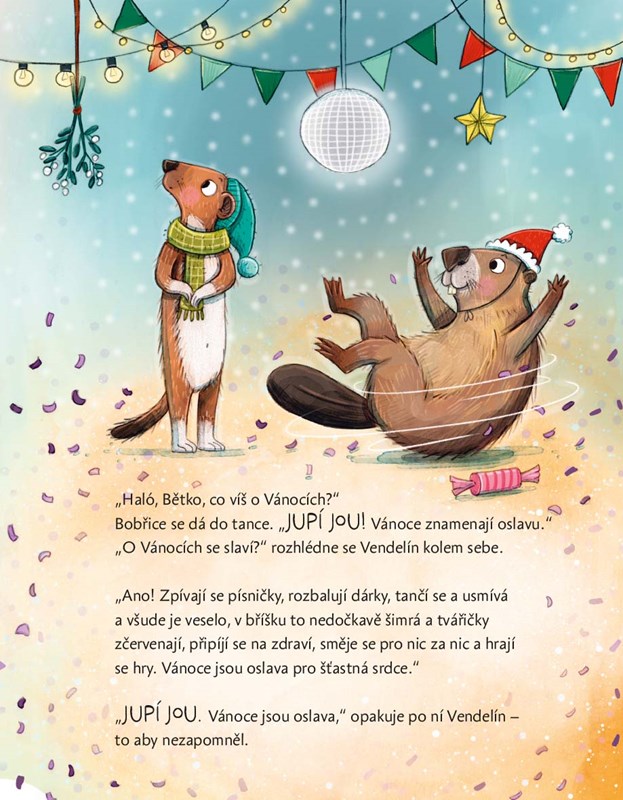 Vendelín Lasička má moc rád zimu. Ale Vánoce? Kdepak, to není nic pro lasičky. Ty přece slaví jarní rovnochlupost a noc svatého Hranostaje. Tak jaképak Vánoce! Jenže pak se za oknem nádherně zatřpytí ozdobený stromeček a Vendelín se zamyslí... možná by nebylo špatné slavit i Vánoce. Nejlepší bude zeptat se kamarádů. Čím jsou pro ně tyto dny výjimečné? Je to vůně, sváteční klid, lahodné jídlo nebo společné setkávání? Přijde Vendelín na to, proč všichni Vánoce tolik milují?